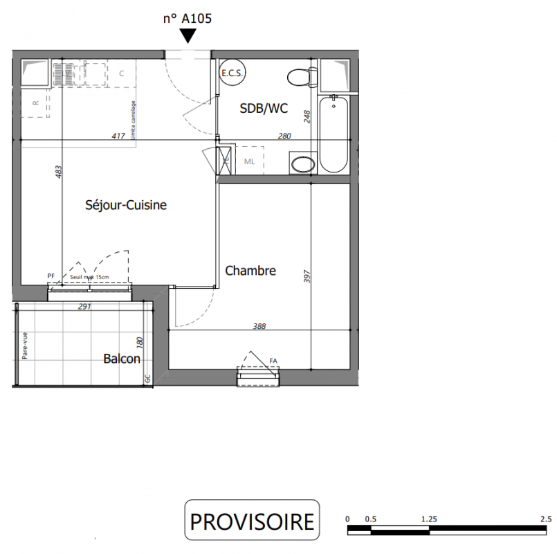 207 000€ Appt. T2 39.29m2 0-RDC