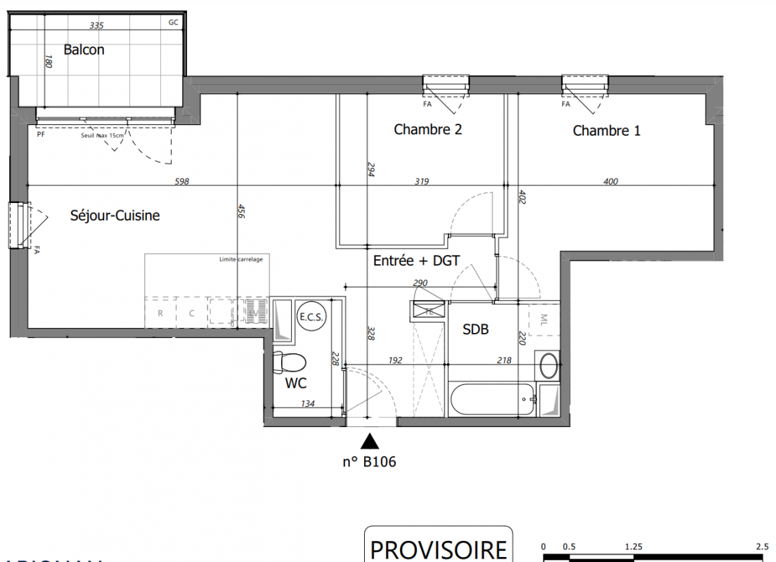 332 800€ Appt. T3 72.04m2 2ème