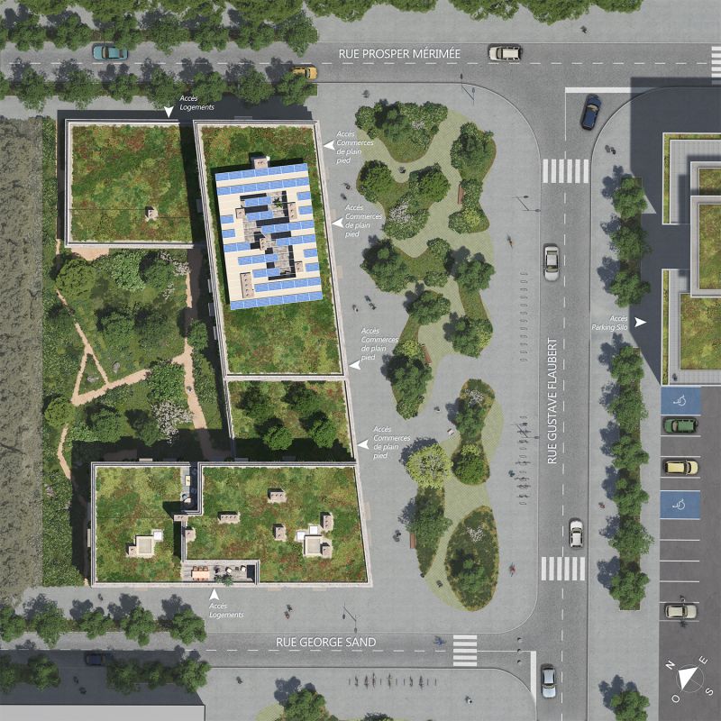 Résidence intimiste 35 logements au total : 26 logements en accession allant du studio au 4 pièces (seuls 2 T4 en attique) 2 bâtiments sur un socle de parking enterré : BAt A entrée de parce...