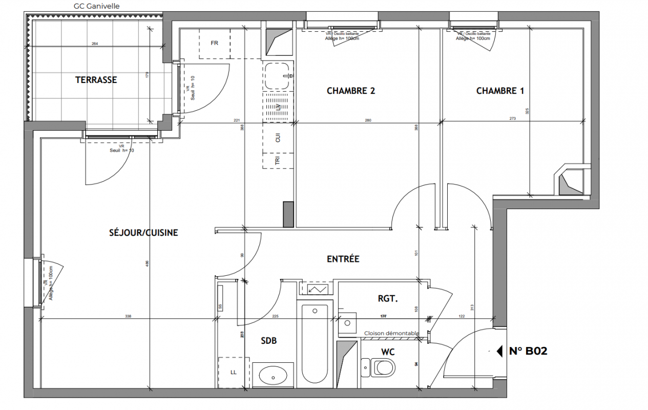 295 166€ Appt. T3 57.92m2 0-RDC