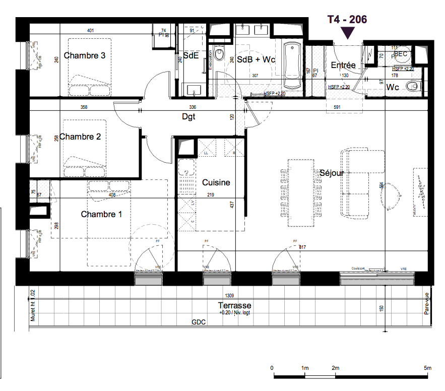 445 000€ Appt. T4 97.7m2 1er