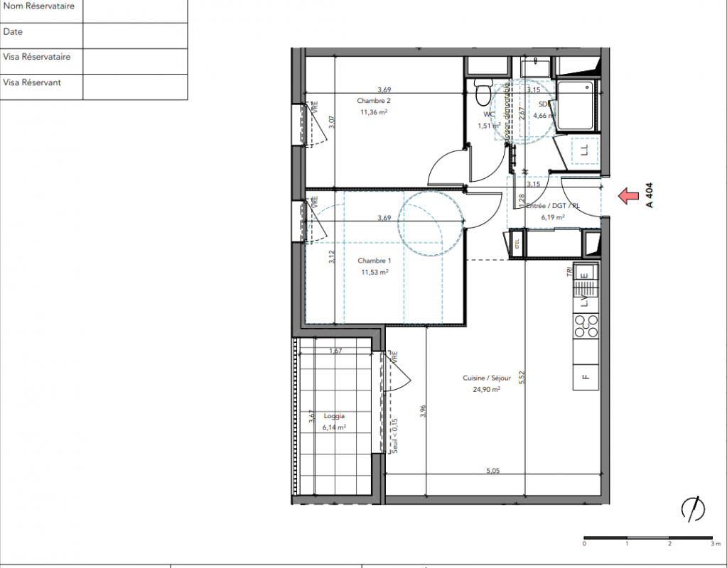 249 900€ Appt. T3 59.03m2 2ème