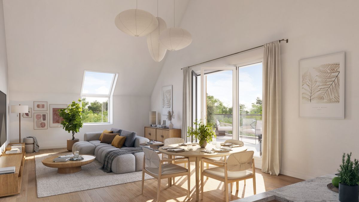 Inspirée de l'architecture locale, la résidence arbore des toitures d'ardoise et des lucarnes à deux pans, en écho au patrimoine régional. Les derniers appartements 3 pièces offrent des espaces bien pensés, des prestations de qualité et des volumes généreux, prolongés par des extérieurs. Ces aménagements maximisent la lumière naturelle dans chaque logement.