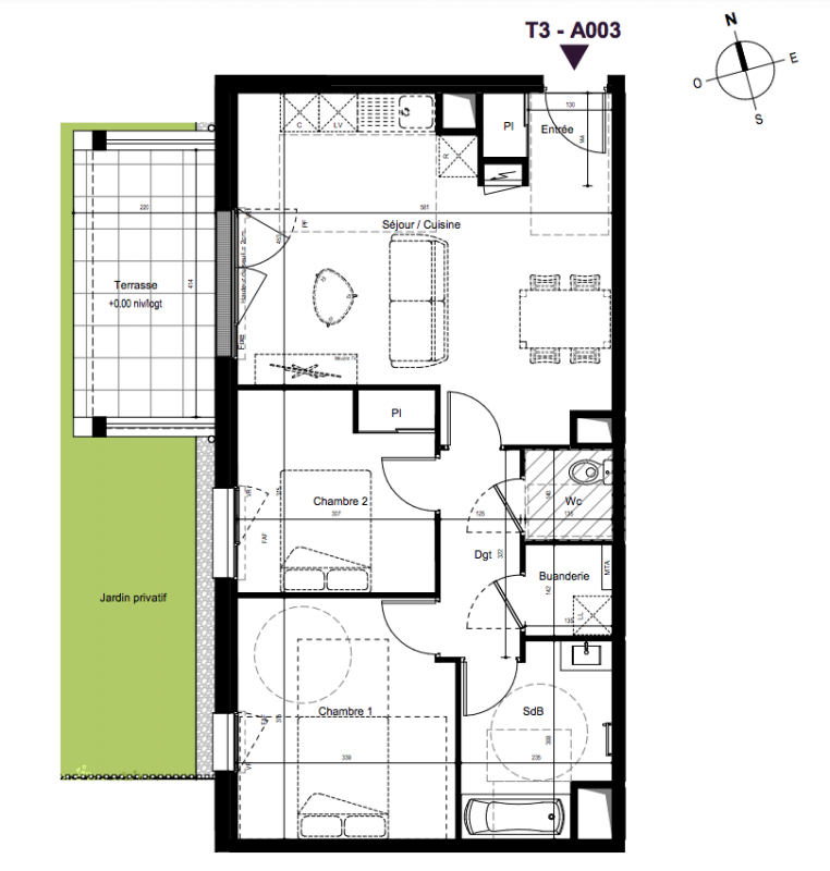 343 000€ Appt. T3 68.72m2 0-RDC