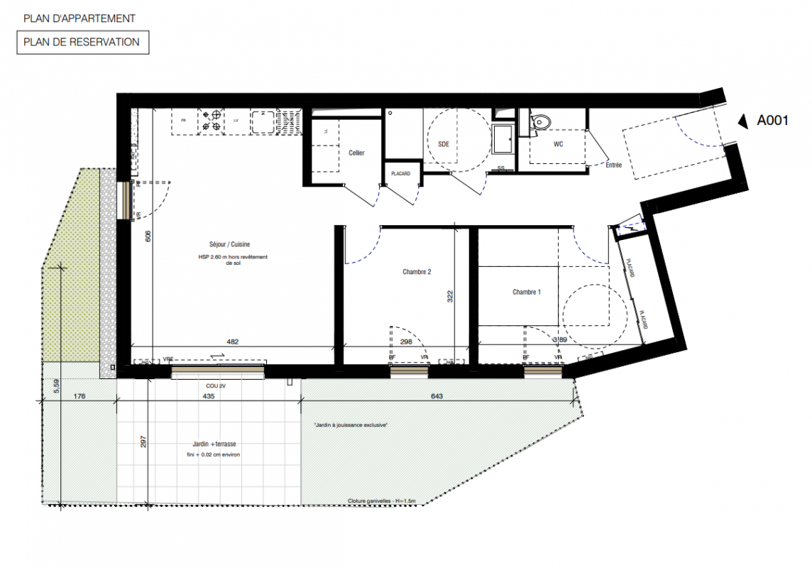 302 000€ Appt. T3 62.73m2 0-RDC
