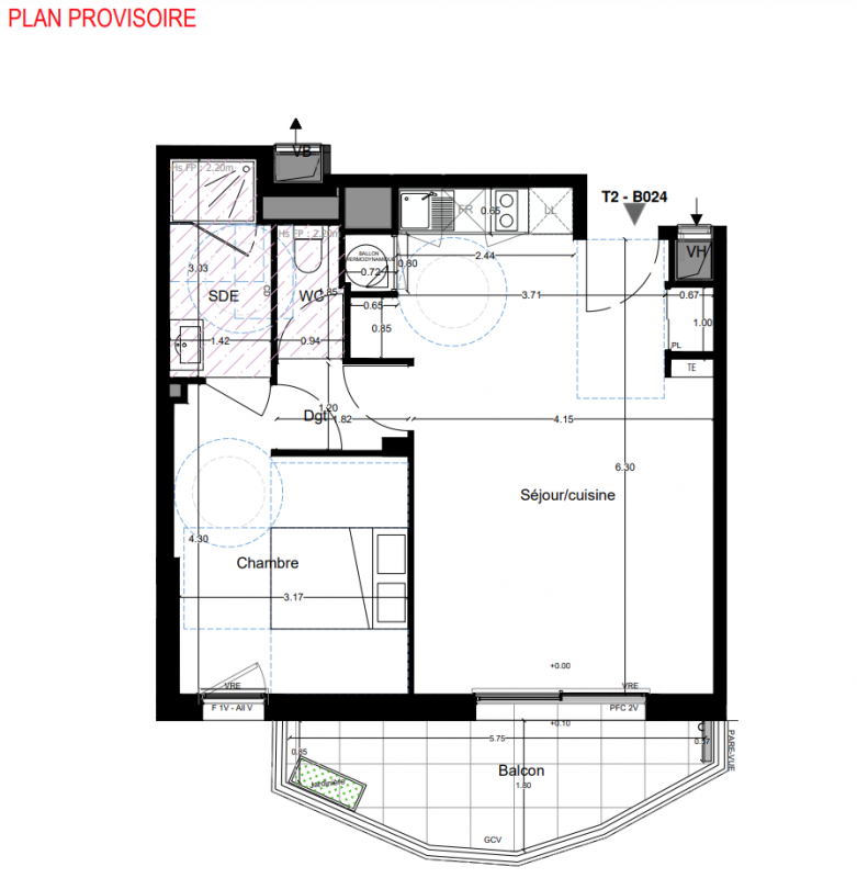 155 417€ Appt. T2 43.7m2 6ème