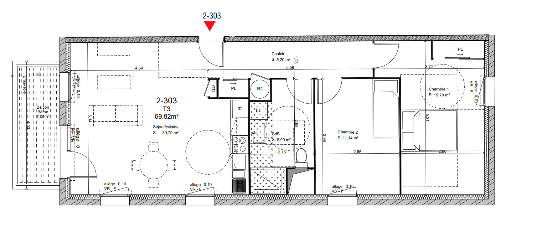 169 400€ Appt. T3 65.03m2 2ème