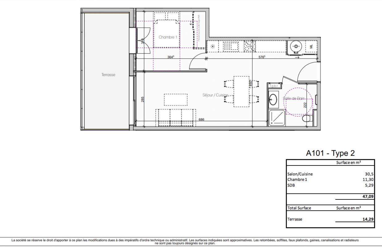 | Voir | Disponible | 307 500€ | A106 | Appt. | T2 | 56.25m2 | 0-RDC | Disponible | 307 500€ | Voir |