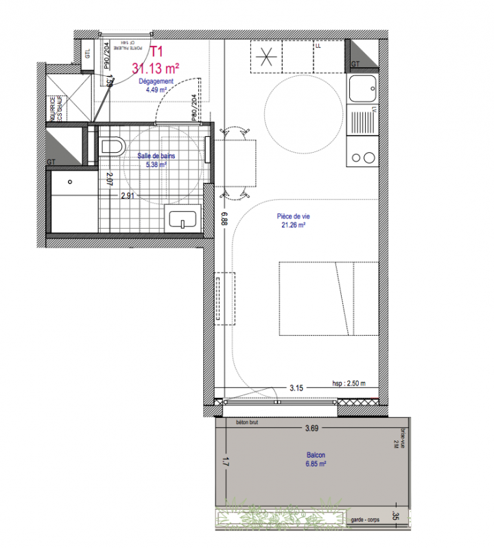 205 000€ Appt. Studio 31.13m2 1er