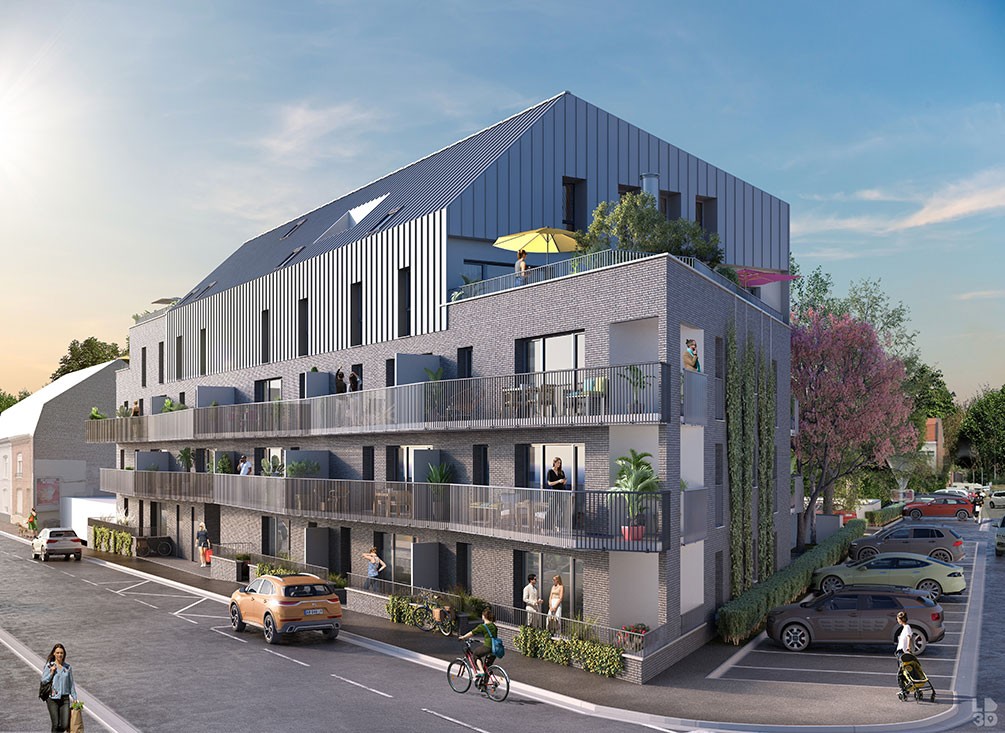 La résidence ARTI s’inscrit dans un environnement résidentiel calme, à deux pas du centre-ville de Marquette-lez-Lille. Son architecture contemporaine associe une élégante façade en brique grise à des détails en bardage métallique, soulignant une identité moderne et sobre. Les nombreux balcons rythment le bâtiment tout en offrant des espaces extérieurs confortables.Les appartements, du 2 au 4 pièces en plain-pied ou duplex, proposent des volumes lumineux et bien agencés. Une attention pARTIculière a été portée au bien-être des résidents : espaces optimisés, pièces de vie ouvertes, luminosité naturelle et accès systématique à un balcon ou une terrasse.La résidence inclut également des stationnements extérieurs et en sous‑sol, avec possibilité de box fermés, ainsi que des locaux dédiés aux mobilités douces.nEmplacement stratégique, à proximité immédiate de Lille et des principaux axes de transportCadre de vie résidentiel, calme et verdoyant, à quelques minutes des berges de la Deûle et du Canal de RoubaixArchitecture contemporaine alliant modernité, matériaux qualitatifs et éléganceBalcons, terrasses ou espaces extérieurs pour l’ensemble des logementsAppartements lumineux, avec duplex spacieux aux derniers étagesRésidence équipée pour les mobilités douces : deux locaux vélos avec prises de rechargeArrêt de bus « Pont Blanc » au pied de la résidenceAppartements :• Sols souples PVC pour les logements en plain-pied• Carrelage en salle de bain et stratifié dans les pièces de vie pour les duplex• Majorité de logements équipés de baignoires• Celliers pour certains lots• Chauffage gaz• Occultation manuelle dans les chambres (motorisation en option)• Balcon ou terrasse pour tous les appartements• Logements duplex spacieux aux étages supérieursRésidence :• Accès sécurisé par badge Vigik et visiophone• Deux locaux vélos, équipés pour la recharge des vélos et trottinettes électriques• Stationnement extérieur ou en sous-sol (places ouvertes ou box fermés en option)• Bâtiment conforme à la RT 2012• Carré potager partagé pour les résidentsÀ proximité, à pied :• Arrêt de bus « Pont Blanc » au pied de la résidence (L14, L86, L5 et L91)• Centre-ville de Marquette-lez-Lille à 4 min*• La Madeleine à 10 min*• Marcq-en-Barœul à 11 min*• Centre-ville de Lille à 20 min*En voiture :• Gares Lille Flandres et Lille Europe à 20 min*Mobilité et accessibilité :• Nouvelle ligne de tramway en cours de déploiement, avec deux stations prévues à Marquette-lez-Lille• Parcs à vélos sécurisés d
