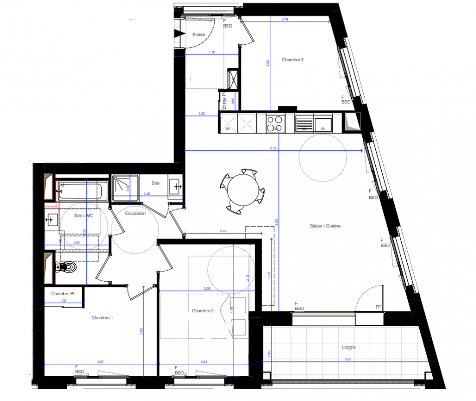*Pour les logements du bâtiment T1 : brise-soleil à lames orientables.