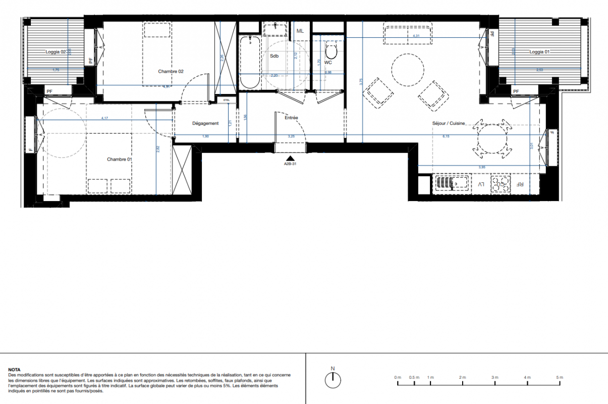 *Pour les logements du bâtiment T2 : store en toile