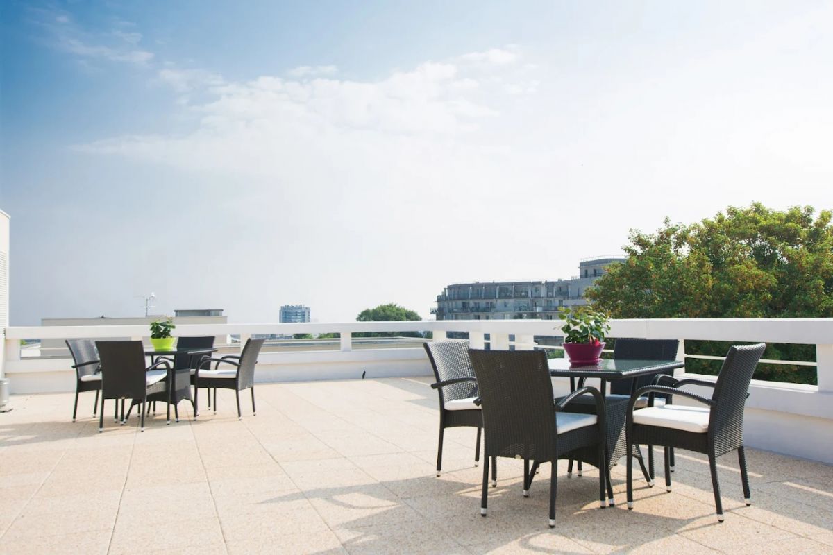 Accolée au parc André Malraux, la résidence propose des appartements, du studio de 29 m² au T3 de 61 m², meublés et équipés avec balcon, terrasse ou loggia. La résidence propose également des espaces communs spacieux : restaurant, salons, bibliothèque, salle de fitness, jardin, terrasse avec vue panoramique. Les résidents bénéficient d'un emplacement au cœur de la ville, en lisière d'un parc municipal, avec un accès rapide au marché et aux commerces de proximité. De plus, les Champs Élysées se trouvent à 20 minutes seulement.