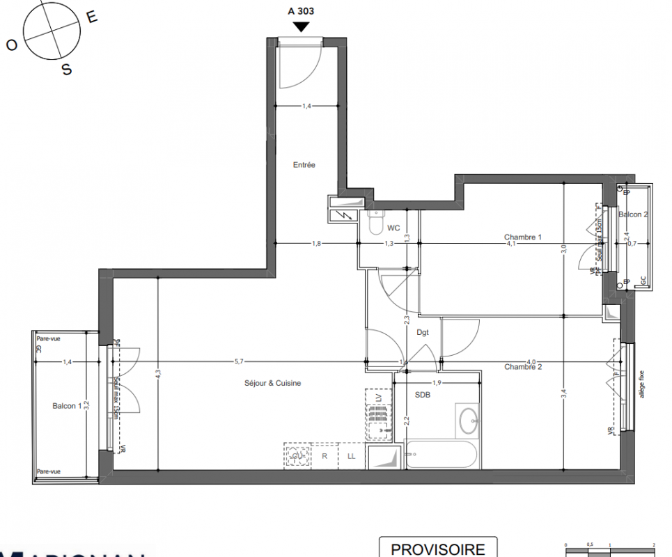 399 000€ Appt. T3 59.63m2 2ème