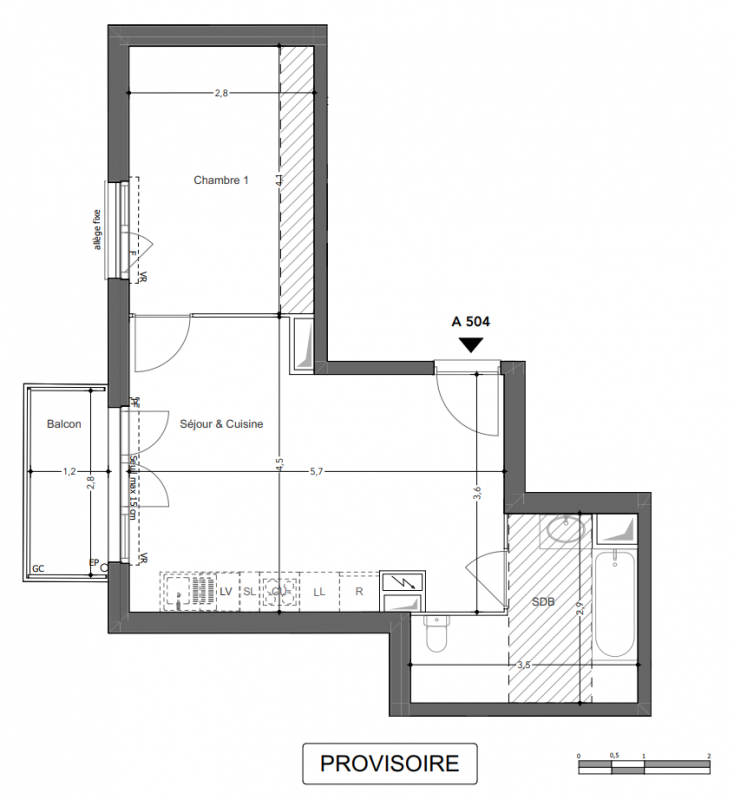 308 500€ Appt. T2 42.33m2 5ème
