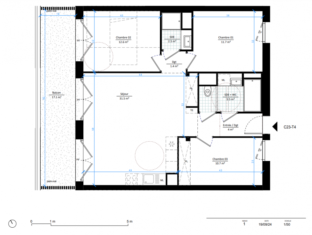 | Voir | Disponible | 414 100€ | C02 | Appt. | T4 | 79.9m2 | 0-RDC | Disponible | 414 100€ | Voir |