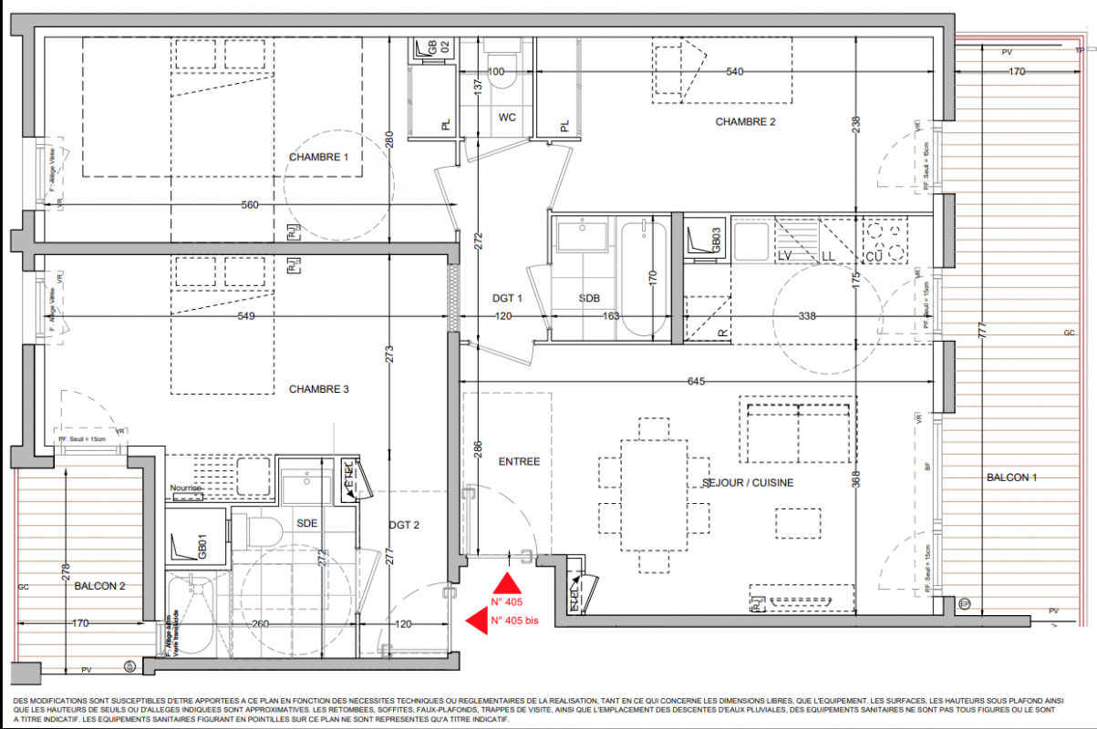 Dernier studio de 30 m² avec balcon de plus de 7 m² orienté sud. Derniers 2 pièces d'environ 45 m² avec balcon.Appartement 3 pièces d'environ 60 m² avec balcon d'au moins 10 m² et parking pour tous !Appartements 4 pièces EVOLUVIE (concept T3 + T1 indépendant) de 87 m² avec balcon de 13 m² et parking pour tous !