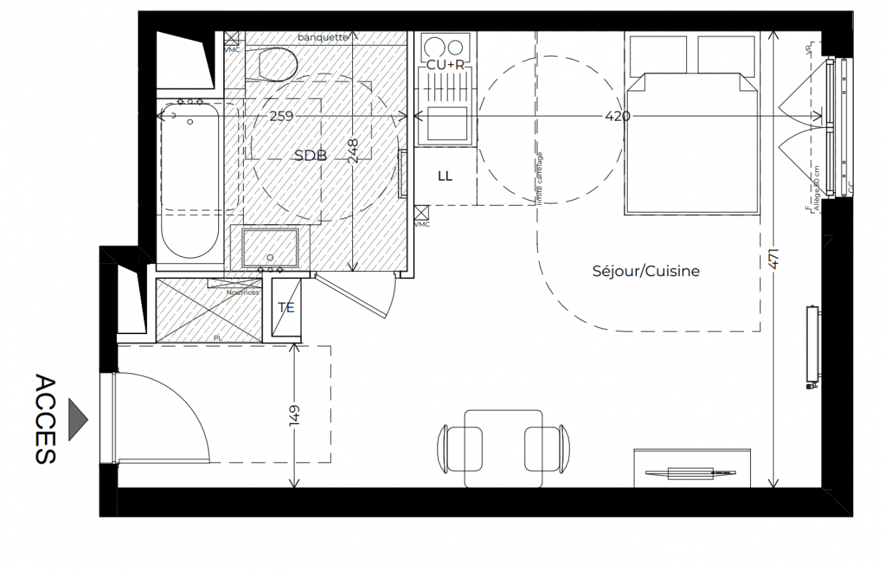333 000€ Appt. - 43.6m2 0-RDC
