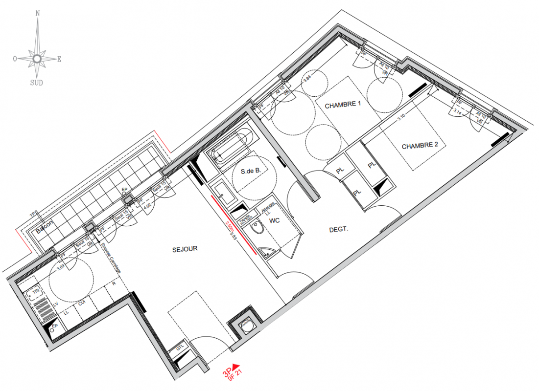 674 000€ Appt. T3 68.79m2 3ème