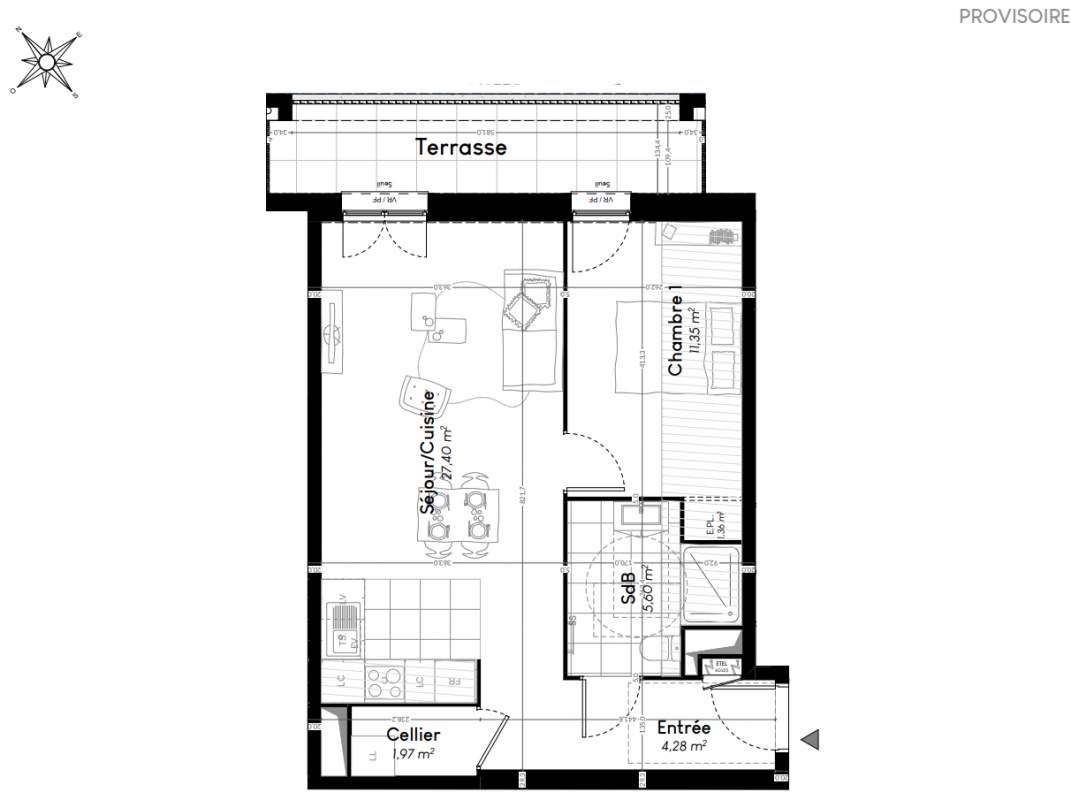 268 900€ Appt. T2 52.35m2 0-RDC