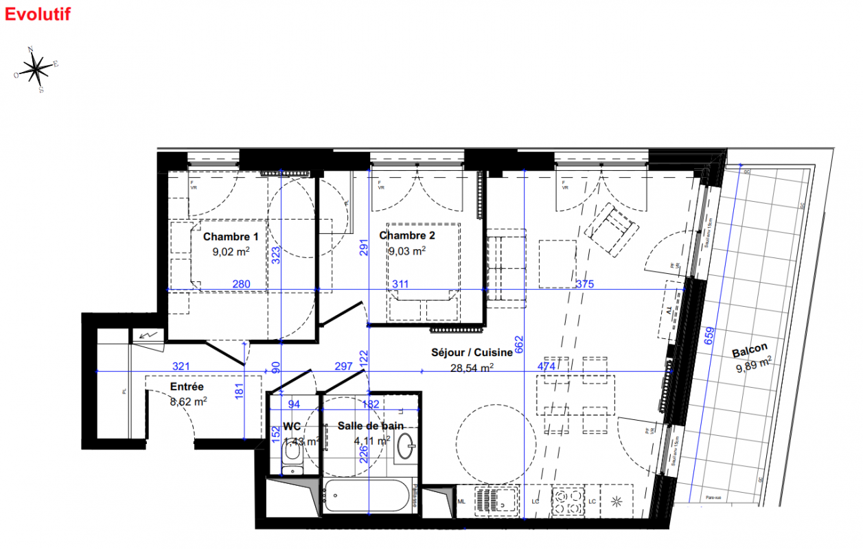 404 000€ Appt. T3 65.8m2 2ème