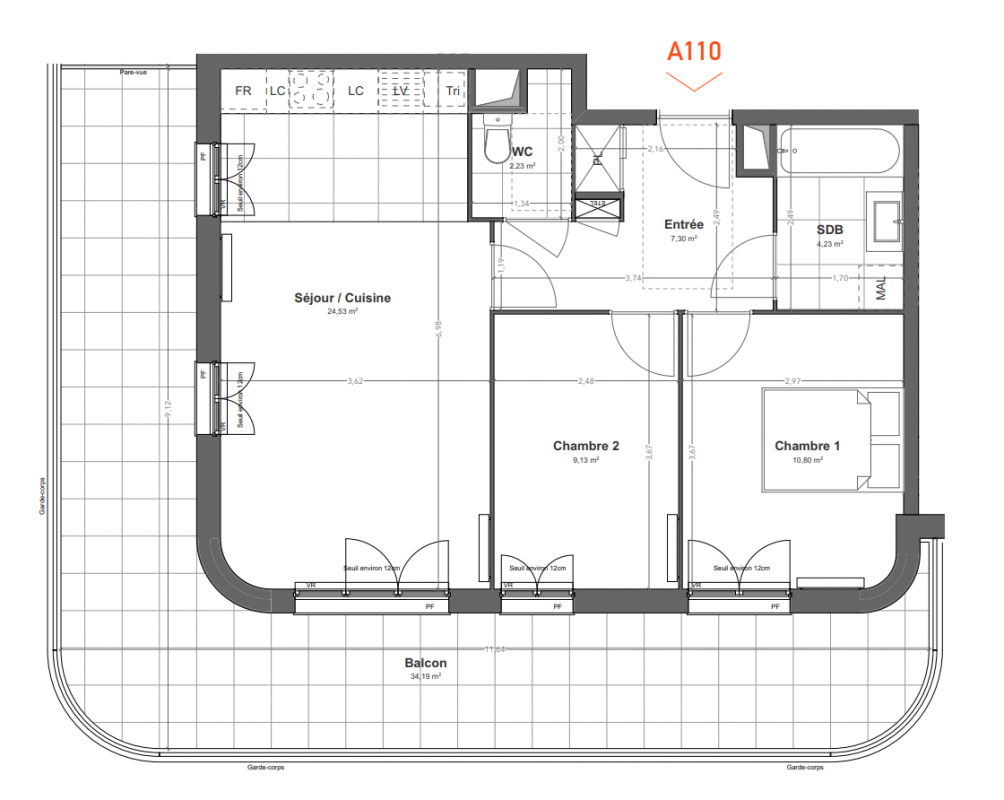 | Voir | Disponible | 326 446€ | A111 | Appt. | T3 | 58.5m2 | 1er | Disponible | 326 446€ | Voir |