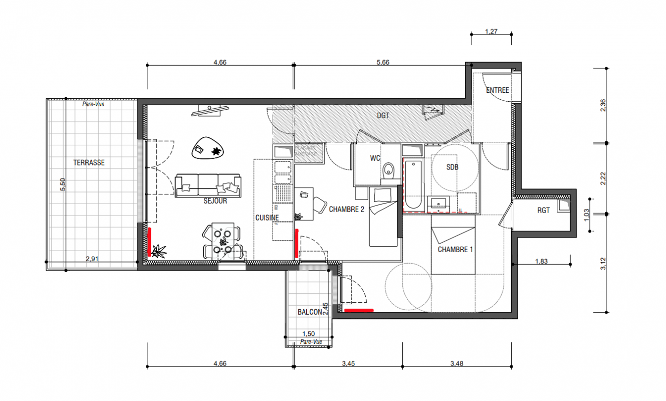 Appt. au 2ème