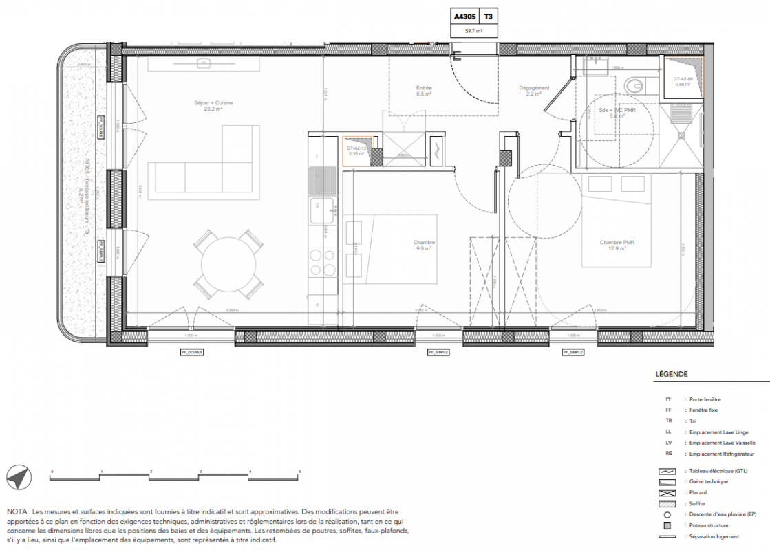336 400€ Appt. T3 58.3m2 3ème