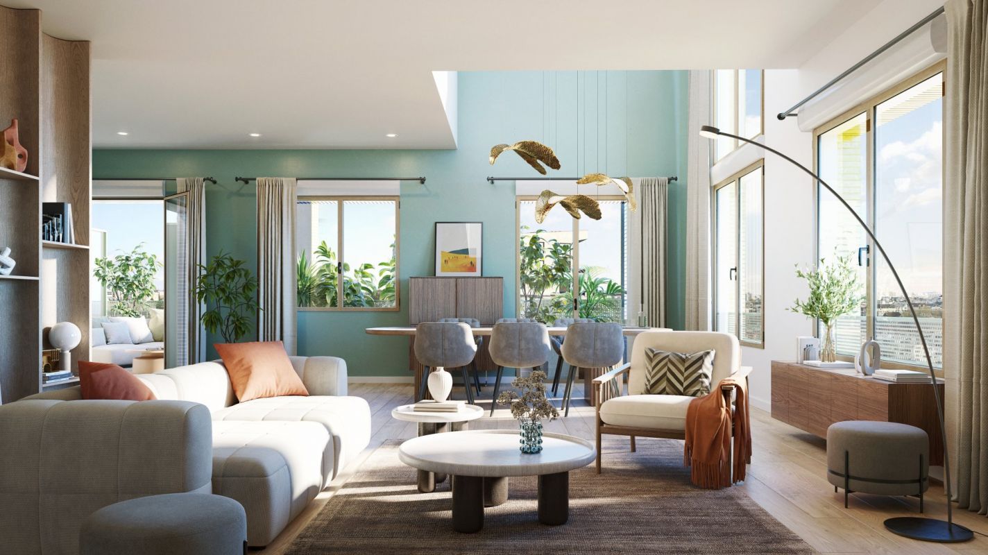 Située aux portes immédiates de la capitale, Ivry-sur-Seine s’affirme comme une commune en pleine mutation, conjuguant avec justesse dynamisme urbain et qualité de vie. Bénéficiant d’un emplacement privilégié, à la fois limitrophe de Paris et bordée par la Seine, la ville s’attache à redéfinir ses quartiers tout en valorisant son riche passé industriel. Elle se distingue par la modernité de ses équipements, l’essor de ses infrastructures, ainsi que par ses engagements forts en faveur du développement durable, faisant d’Ivry-sur-Seine un territoire attractif, en constante évolution. C’est dans ce cadre renouvelé que s’inscrit cette nouvelle réalisation, proposant 86 appartements du 2 au 5 pièces duplex, conçus pour allier confort pérenne et art de vivre contemporain. Chaque logement s’ouvre sur un généreux espace extérieur – loggia ou terrasse – invitant à profiter pleinement d’un cœur d’îlot paysager soigneusement aménagé. Les plans, minutieusement étudiés, dévoilent des appartements traversants, pour certains en duplex, bénéficiant de multiples expositions. Ils offrent une luminosité naturelle optimale et des volumes chaleureux, propices à un quotidien harmonieux et apaisé.