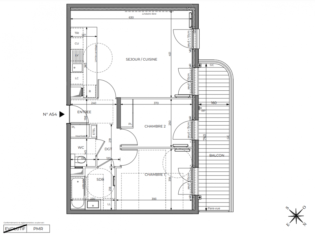 Cloisons épaisseur 7 cm dans l’ensemble des logements