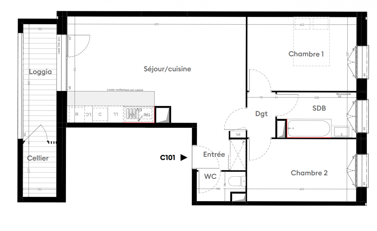 326 900€ Appt. - 69.98m2 0-RDC