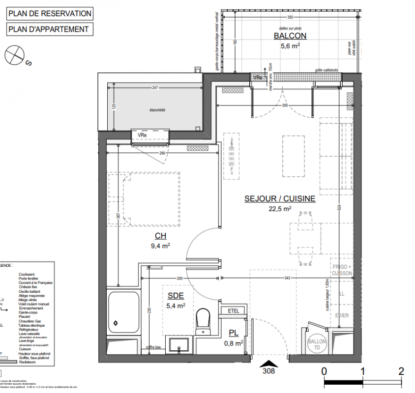 128 000€ Appt. T2 42.17m2 1er