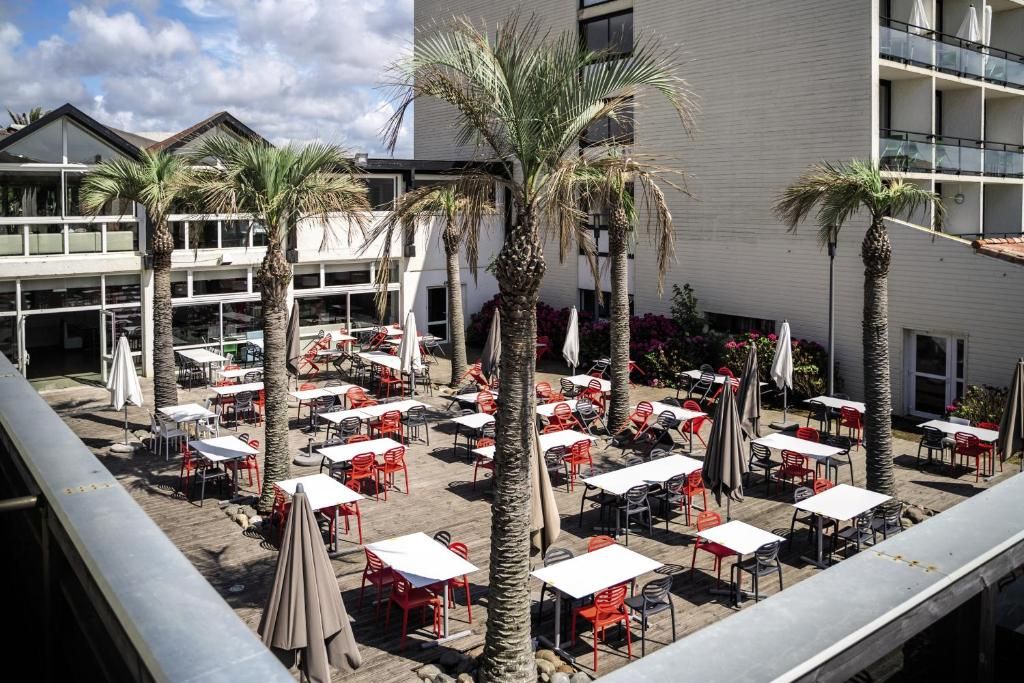 Située à 300 mètres de la plage, la résidence propose des appartements, allant du studio au T2 pouvant accueillir jusqu'à 6 personnes, meublés et équipés. L'établissement prend place dans un espace 100% piéton de 4 hectares et propose également un restaurant avec patio arboré, une terrasse ombragée, des terrains multisports, une salle de fitness et un espace aqualudique chauffé de 600 m² avec solarium, sauna et hammam. L'établissement est idéalement situé à 500 mètres d'un parc aquatique, à moins de 15 minutes en voiture des stations balnéaires de Capbreton et Hossegor, à proximité des réserves naturelles de l'Étang Noir et l'Étang Blanc et à moins d'une heure de la frontière espagnole.