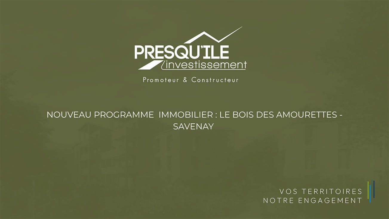 Nouveau programme immobilier neuf à Savenay - Résidence du Bois des AmourettesVous rêvez d’un logement neuf au calme, entouré de verdure, à deux pas du centre-ville ? Découvrez bientôt la Résidence du Bois des Amourettes, un nouveau programme immobilier à Savenay signé Presqu’île Investissement.Située dans un quartier résidentiel paisible, à seulement quelques minutes à pied des écoles, commerces, équipements sportifs et de la gare SNCF, cette résidence intimiste de 30 logements propose des appartements neufs du T2 au T3, avec balcons spacieux ou jardins privatifs. Chaque logement est traversant, lumineux, et conçu dans une démarche de haute qualité environnementale conforme à la RE2020 seuil 2025.Au cœur d’un environnement boisé, entre clairière centrale, buttes végétalisées préservées et prairies partagées, la nature est omniprésente. Le stationnement est volontairement repoussé en lisière, pour laisser place aux circulations douces et préserver la tranquillité du site.Des logements durables et éco-conçus, construits avec des matériaux biosourcés, pensés pour le confort de vie, la performance énergétique et la préservation de la biodiversité.Pourquoi choisir Savenay pour vivre ou investir ?Entre Nantes et Saint-Nazaire, la ville de Savenay offre un emplacement stratégique, une qualité de vie rare, un tissu économique dynamique et un réseau de transport performant. Idéal pour les familles, les jeunes actifs ou les investisseurs, Savenay séduit par son équilibre entre nature, services, mobilité et opportunités.Un projet porté par une entreprise familiale ancrée dans son territoireDepuis plus de 60 ans, le groupe Jean Guéno construit et développe des projets durables en Loire-Atlantique. En 1997, la création de Presqu’île Investissement a marqué une nouvelle étape : celle de la promotion immobilière au service des habitants, avec proximité, engagement local et esprit de famille.Lancement commercial imminent Inscrivez-vous pour être informé(e) en avant-première et profiter d’une opportunité rare sur le marché immobilier de Savenay.Contact : 02 40 24 88 59