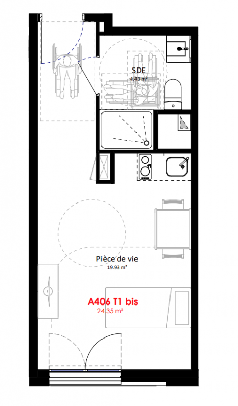 113 800€ Appt. Studio 24.19m2 0-RDC