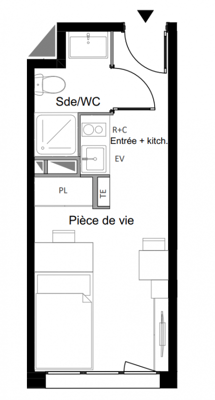 95 400€ Appt. Studio 18.1m2 4ème