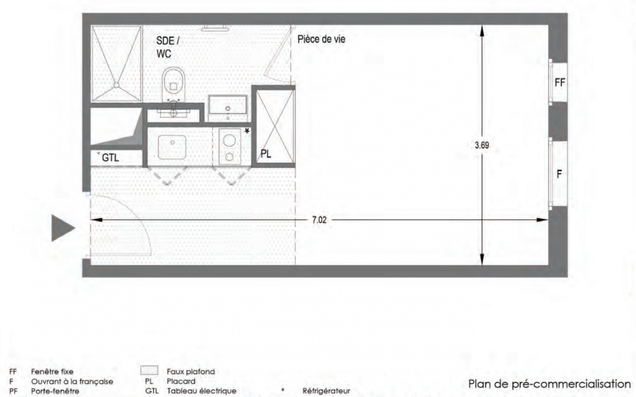 197 203€ Appt. Studio 25.4m2 0-RDC
