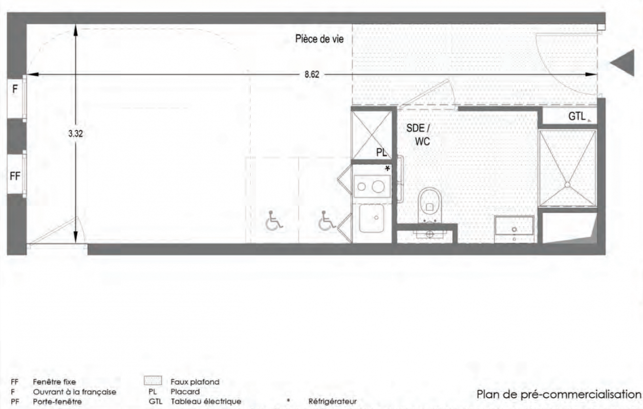 173 118€ Appt. Studio 21.8m2 0-RDC