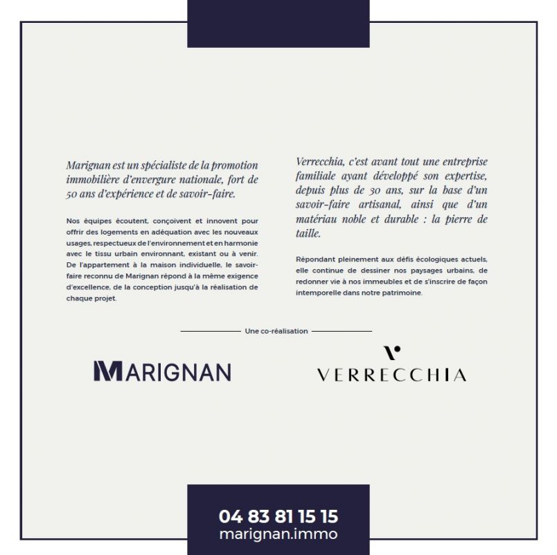 NOUVEAU à EZE ! Et si vous pouviez déjà voir la mer depuis votre futur appartement ? Découvrez dès maintenant les vues depuis notre plateforme surélevée ! Réservez votre visite. Implantée dans un environnement résidentiel d’exception, notre nouvelle adresse intimiste propose seulement 13 appartements offrant à ses habitants un cadre de vie intime et privilégié. Du 2 au 4 pièces, chaque appartement bénéficie d’un espace extérieur avec terrasse, ou jardin privatif, prolongeant harmonieusement les pièces à vivre. En dernier étage, certains logements profitent d’un rooftop qui offre une véritable terrasse suspendue avec une vue imprenable sur la mer. Résolument contemporaine, l’architecture de la résidence s’intègre avec élégance dans le paysage naturel d’Èze, entre mer et collines. Une piscine collective vient enrichir les prestations haut de gamme pour un quotidien placé sous le signe du bien-être. Les places de parking en sous-sol garantissent confort et sécurité, tandis qu’un local à vélos complète les équipements pratiques de la résidence. À seulement quelques minutes en voiture du village médiéval d’Èze et de ses commerces, la résidence bénéficie d’un emplacement idéal entre Monaco et Nice. Elle allie une architecture soignée, des prestations de standing et un cadre naturel exceptionnel. Contactez-nous dès maintenant un de nos conseillers pour découvrir tous nos appartements neufs d’exception à EZE et être parmi les premiers à choisir le logement de vos rêves !Une co-promotion Marignan et Verrecchia