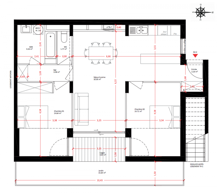 320 700€ Appt. T3 68.53m2 1er